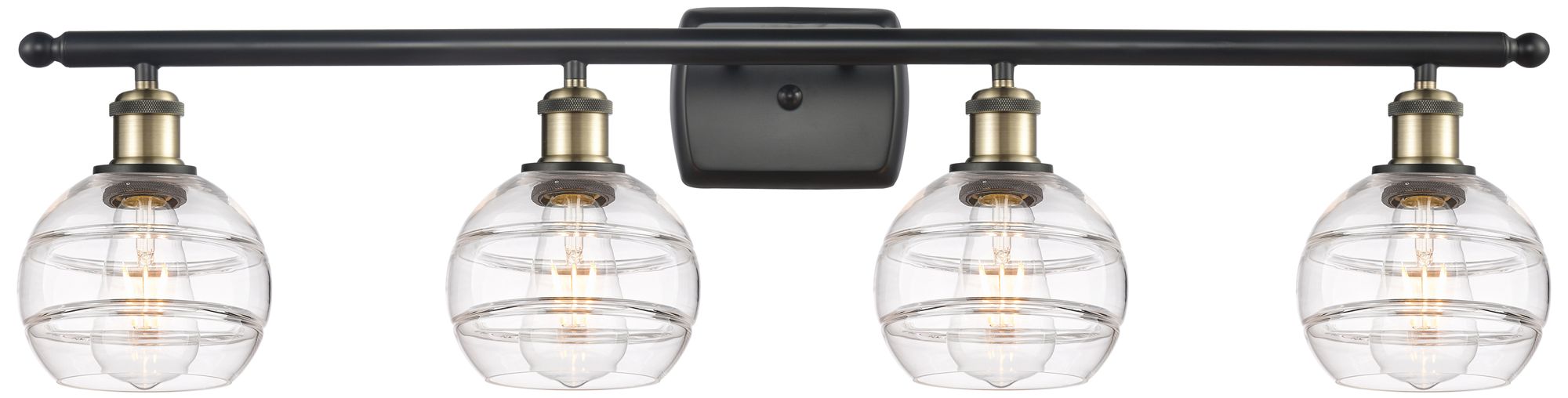Ballston Rochester 35.88"W 4-Light Black Brass Bath Light w/ Clear Sha