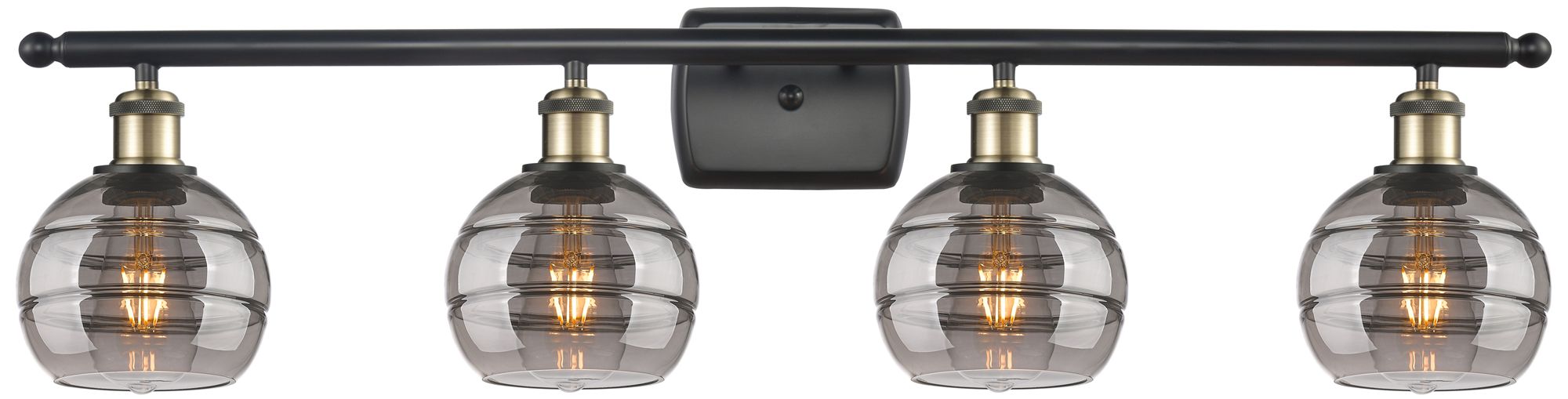Ballston Rochester 35.88"W 4-Light Black Brass Bath Light w/ Smoke Sha