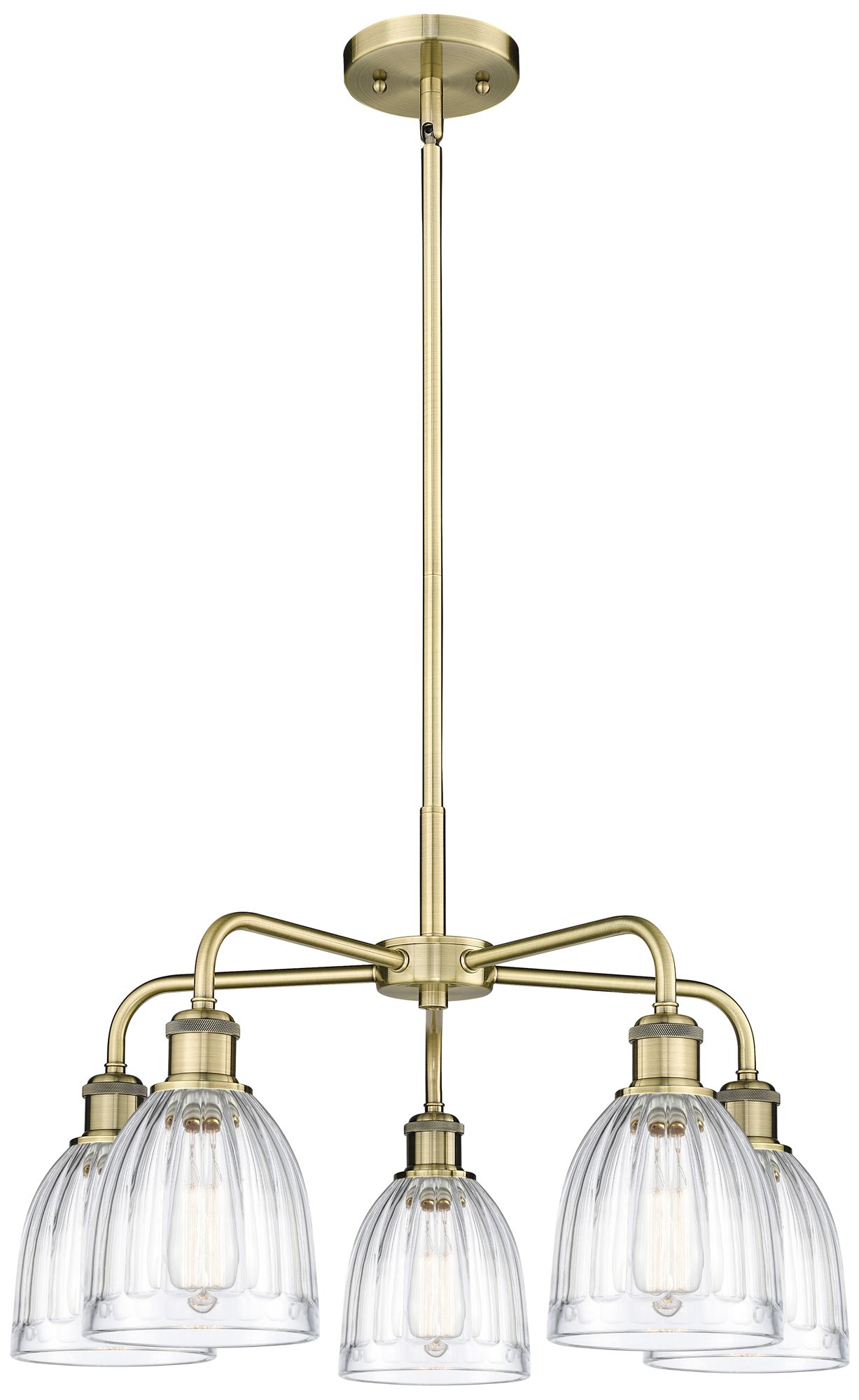 Brookfield 23.75"W 5 Light Antique Brass Stem Chandelier w/ Clear Shad