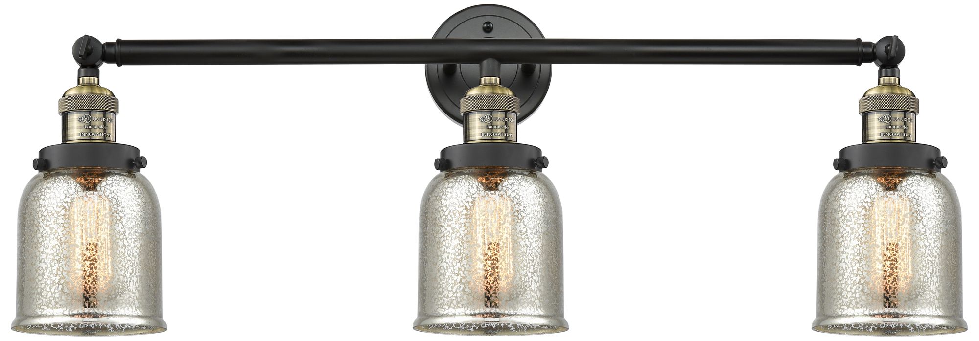 Bell 3 Light 30" Bath Light - Black Brass - Silver Mercury Shade
