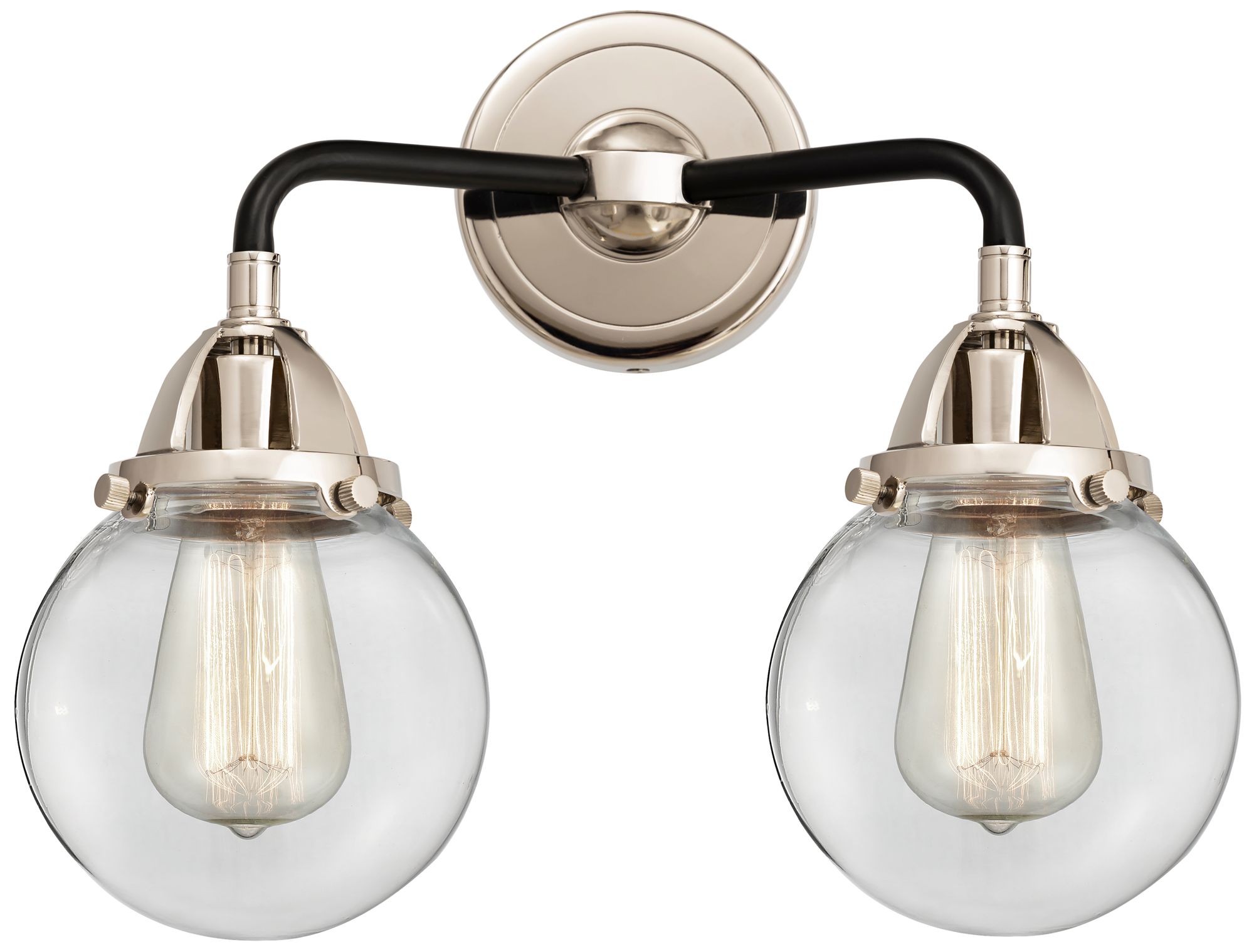 Nouveau 2 Beacon 6" 2 Light 14" Bath Light - Black Polished Nicke