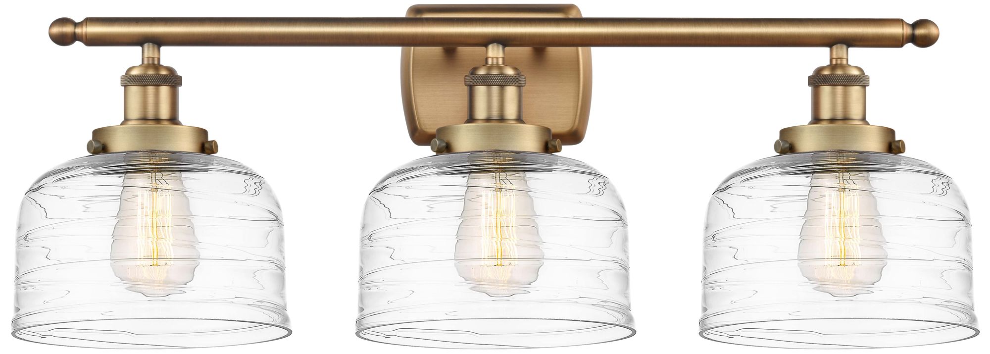 Ballston Urban Bell 28" 3 Light Brushed Brass Bath Light w/ Swirl Shad