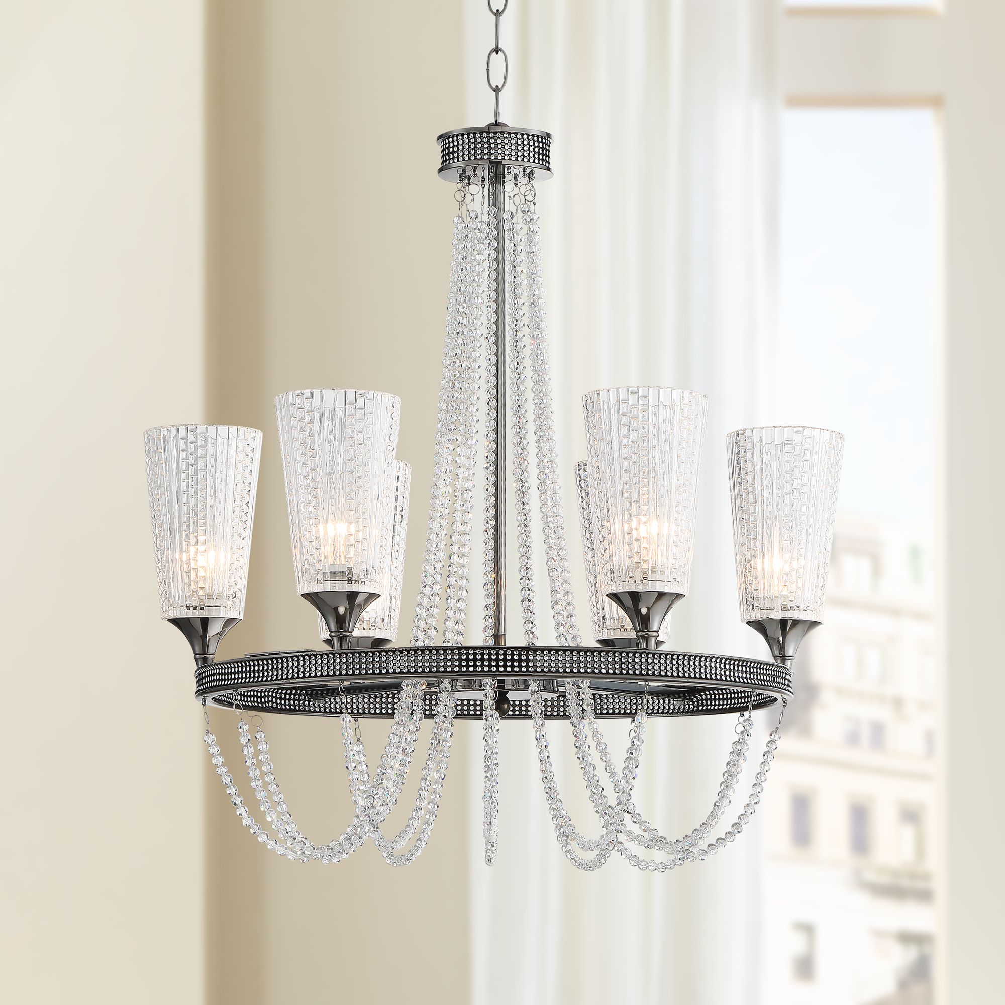 Gracia 23 1/2"W Black Nickel Glass Beads 6-Light Chandelier