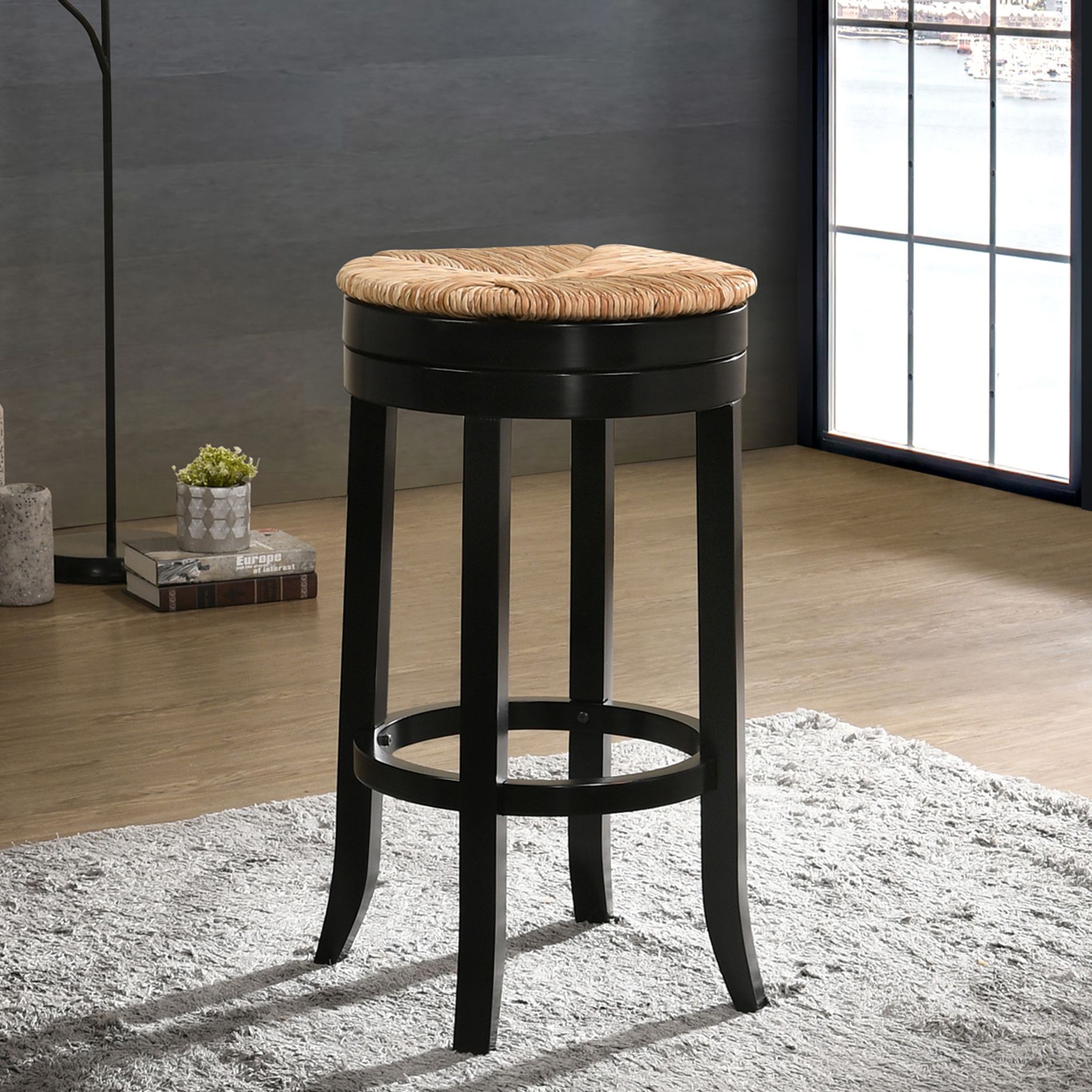 Irving 30" Antique Black Wood and Rush Swivel Bar Stool