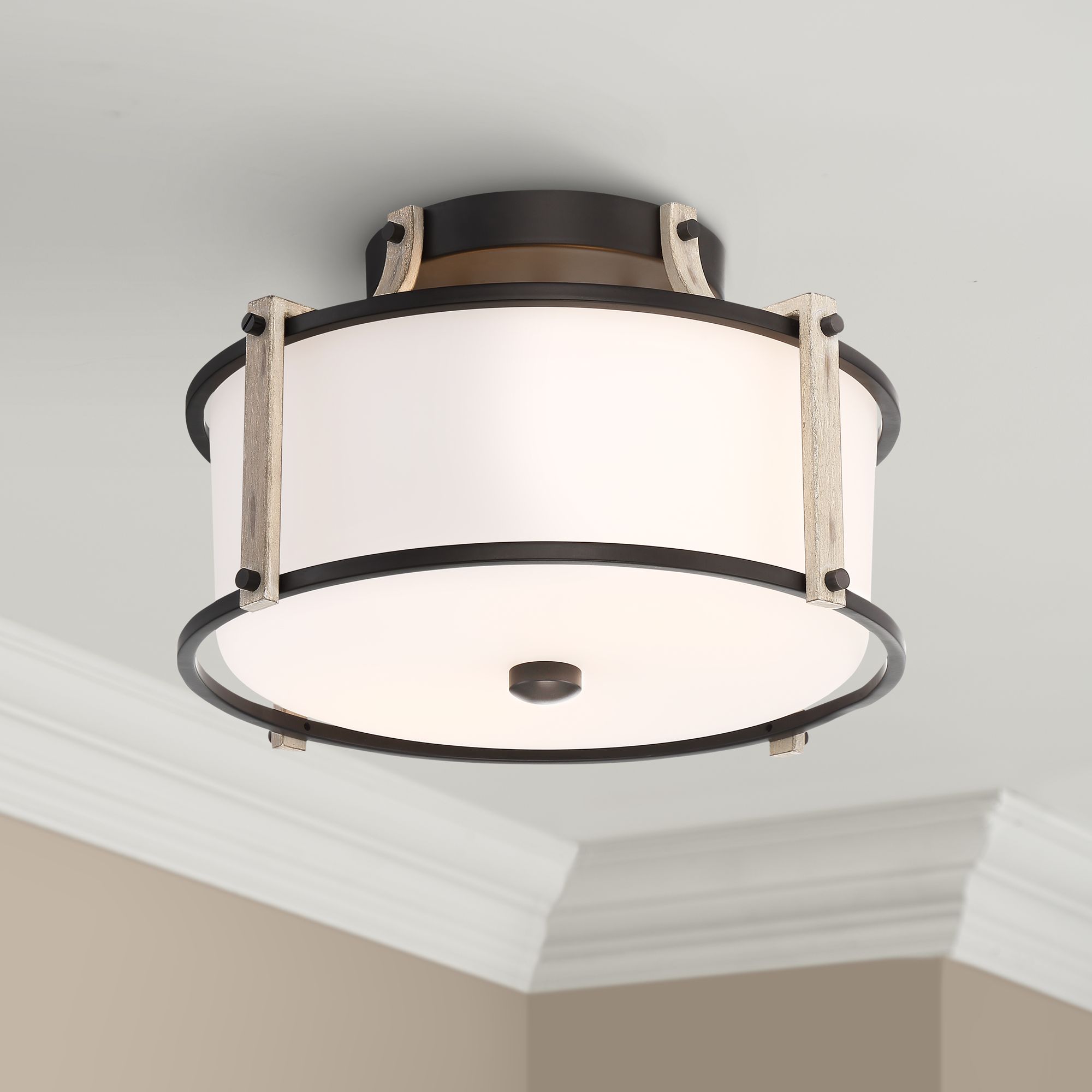 Possini Euro Timmins 13" Wide Black and Wood Ceiling Light