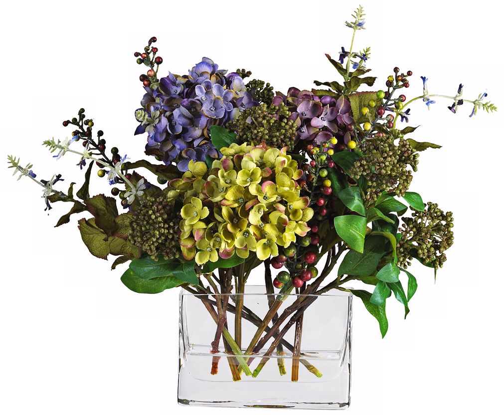 Mixed Hydrangea 12" High Faux Floral Bouquet in Vase