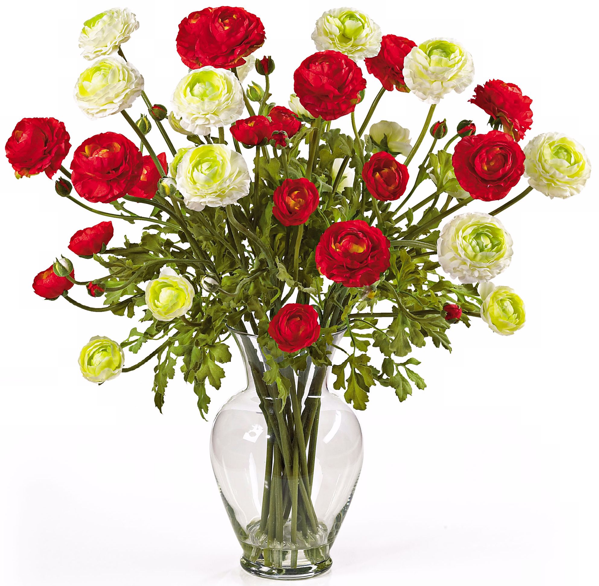 Red and White Ranunculus 24"W Faux Floral Bouquet in a Vase