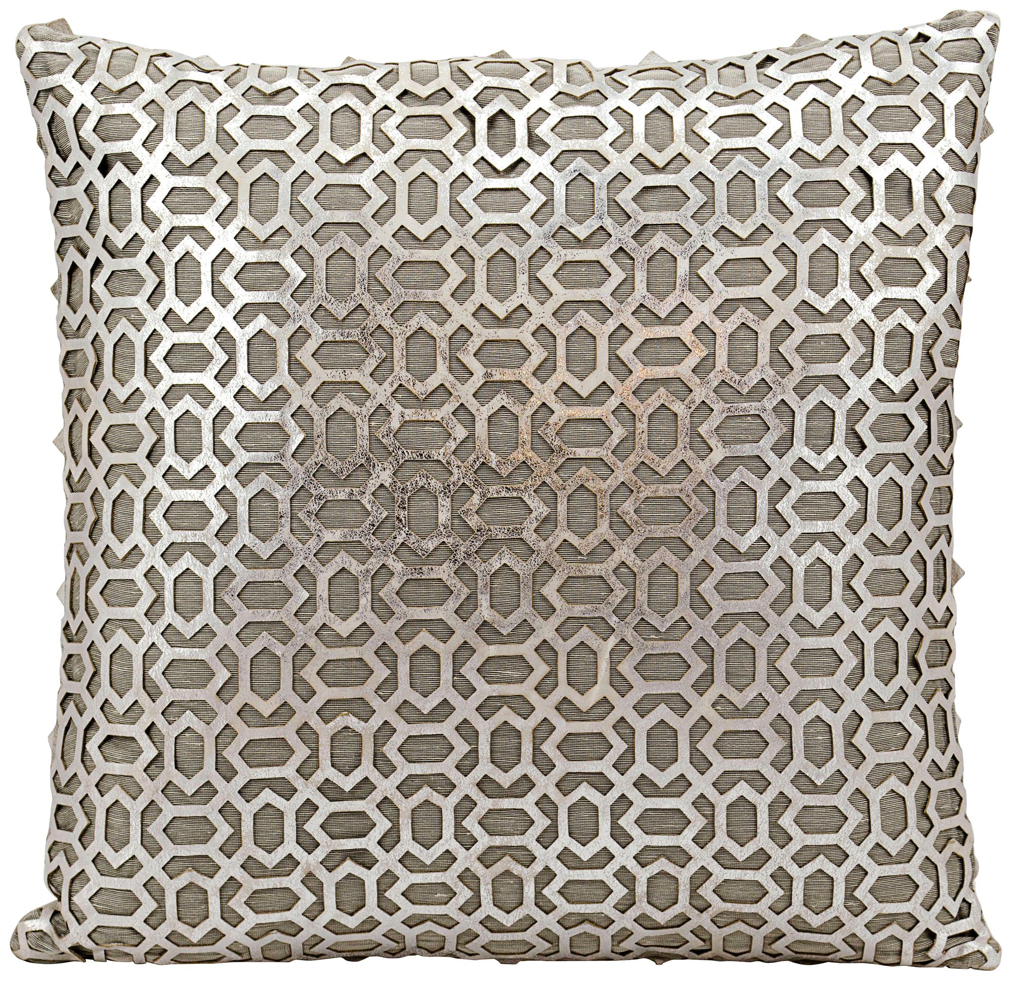 Mina Victory Laser-Cut Silver 18" Square Leather Pillow