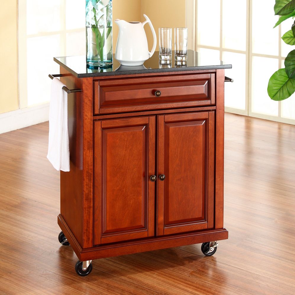 York 28 1/4" Wide Black Granite Cherry Kitchen Island Cart