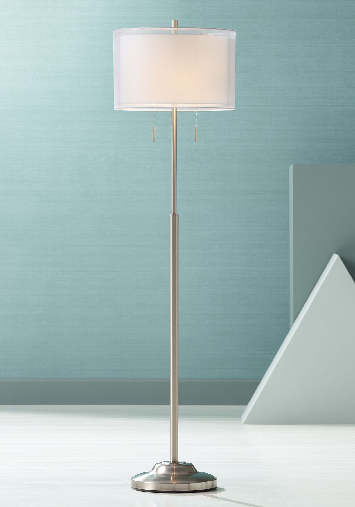 Possini Euro Roxxy 65 1/2" Double Shade Brushed Nickel Floor Lamp