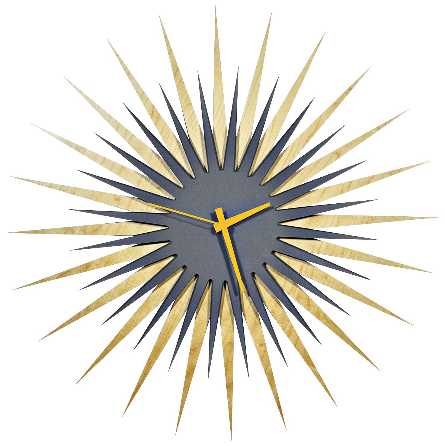 Maple Gray and Orange Atomic Starburst 23" Round Wall Clock