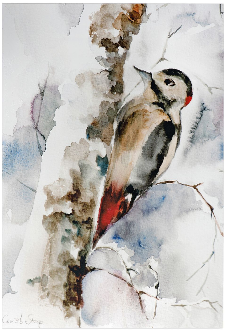 Woodpecker 32" Wide Watercolor Metal Wall Art