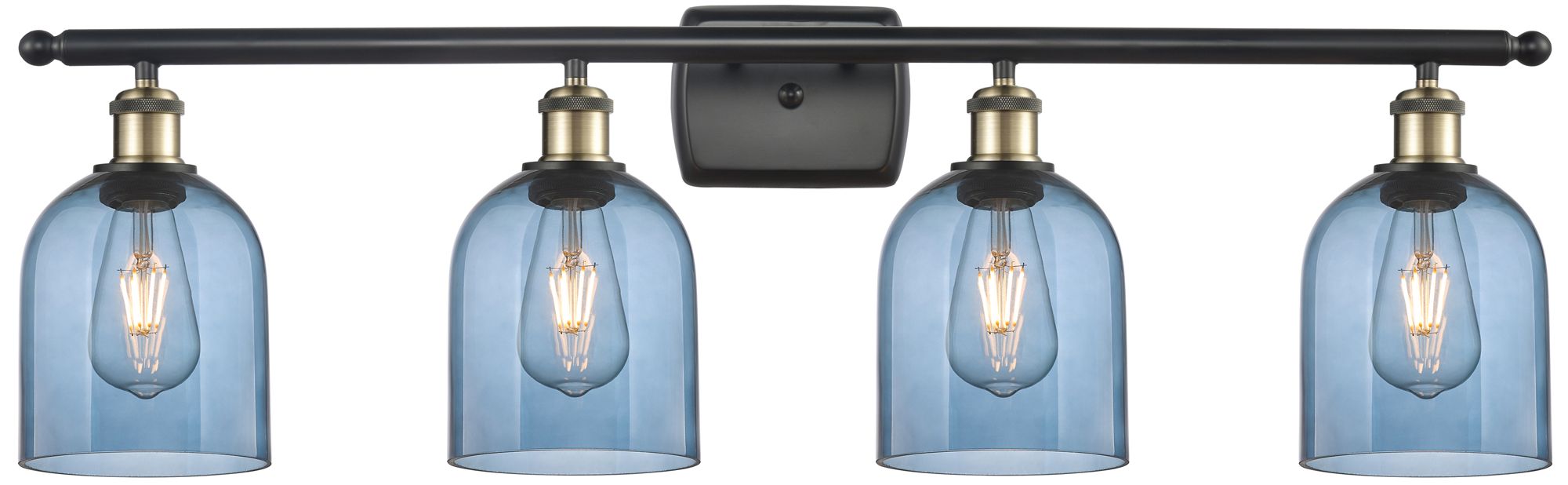 Ballston Bella 35.5"W 4-Light Black Brass Bath Vanity Light w/ Blue Sh
