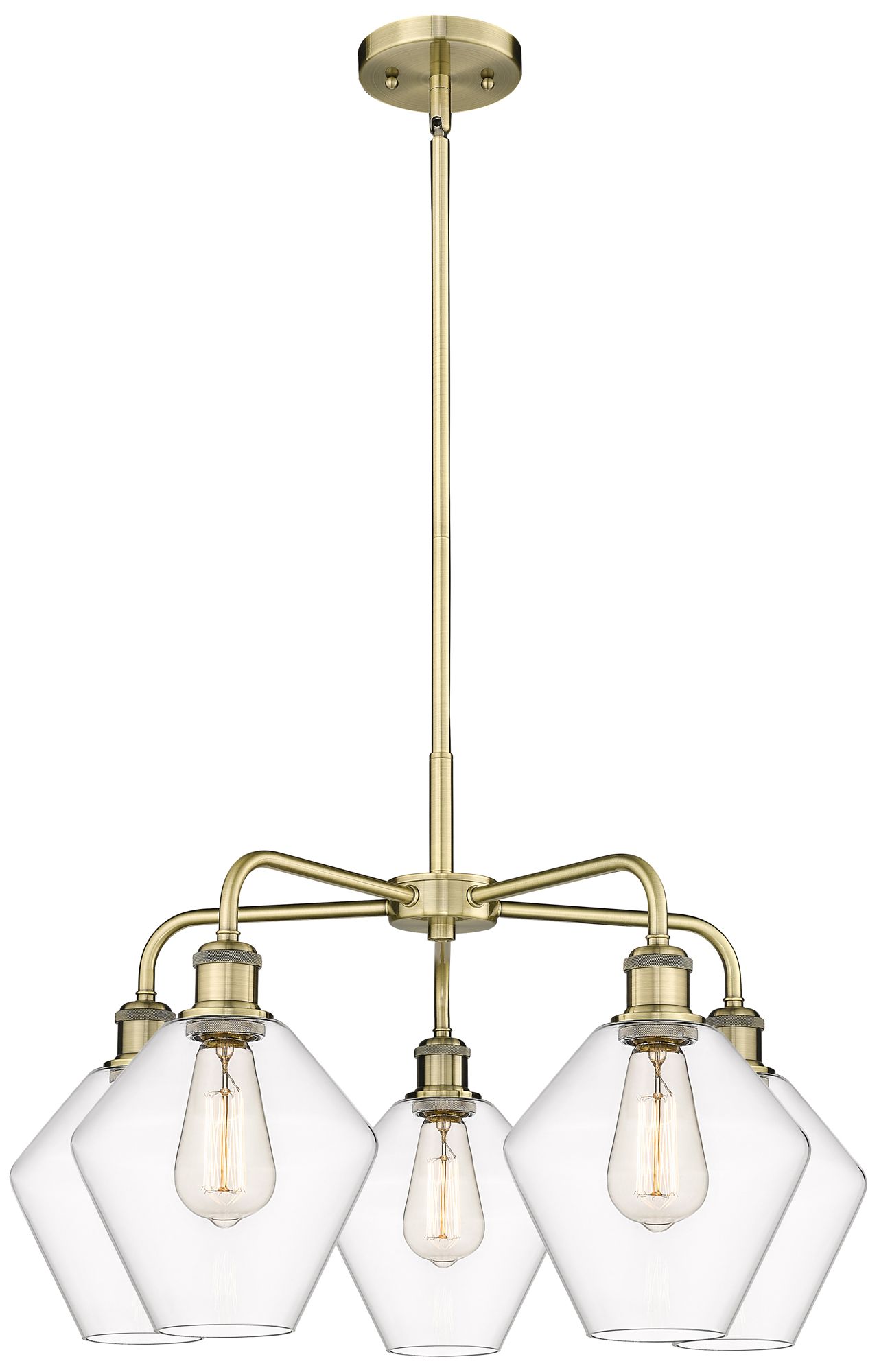 Cindyrella 26"W 5 Light Antique Brass Stem Hung Chandelier With Clear