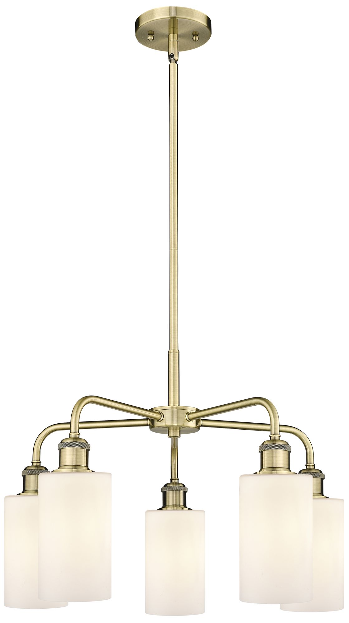 Clymer 21.88"W 5 Light Antique Brass Stem Hung Chandelier With White S