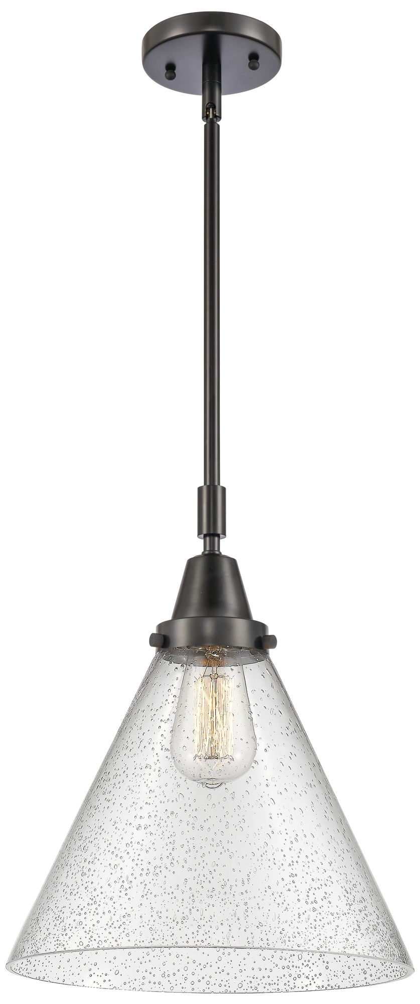 Caden Cone 12" Wide Matte Black Stem Hung Mini Pendant w/ Seedy Shade