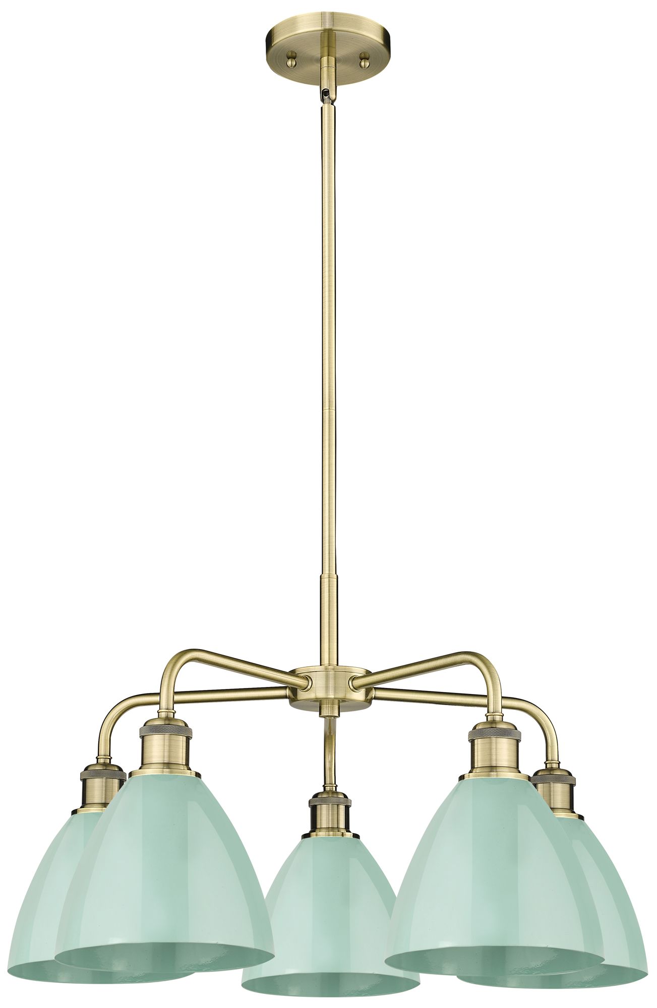 Ballston Dome 25.5"W 5 Light Antique Brass Stem Chandelier w/ Seafoam