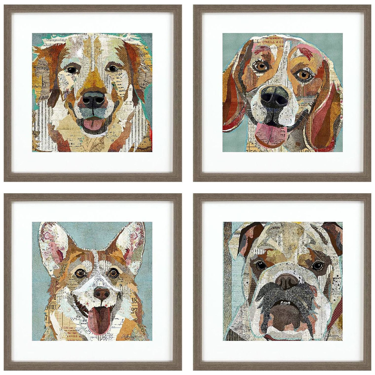 Dog Collage II 21"W x 21"H Framed Art Set of 4