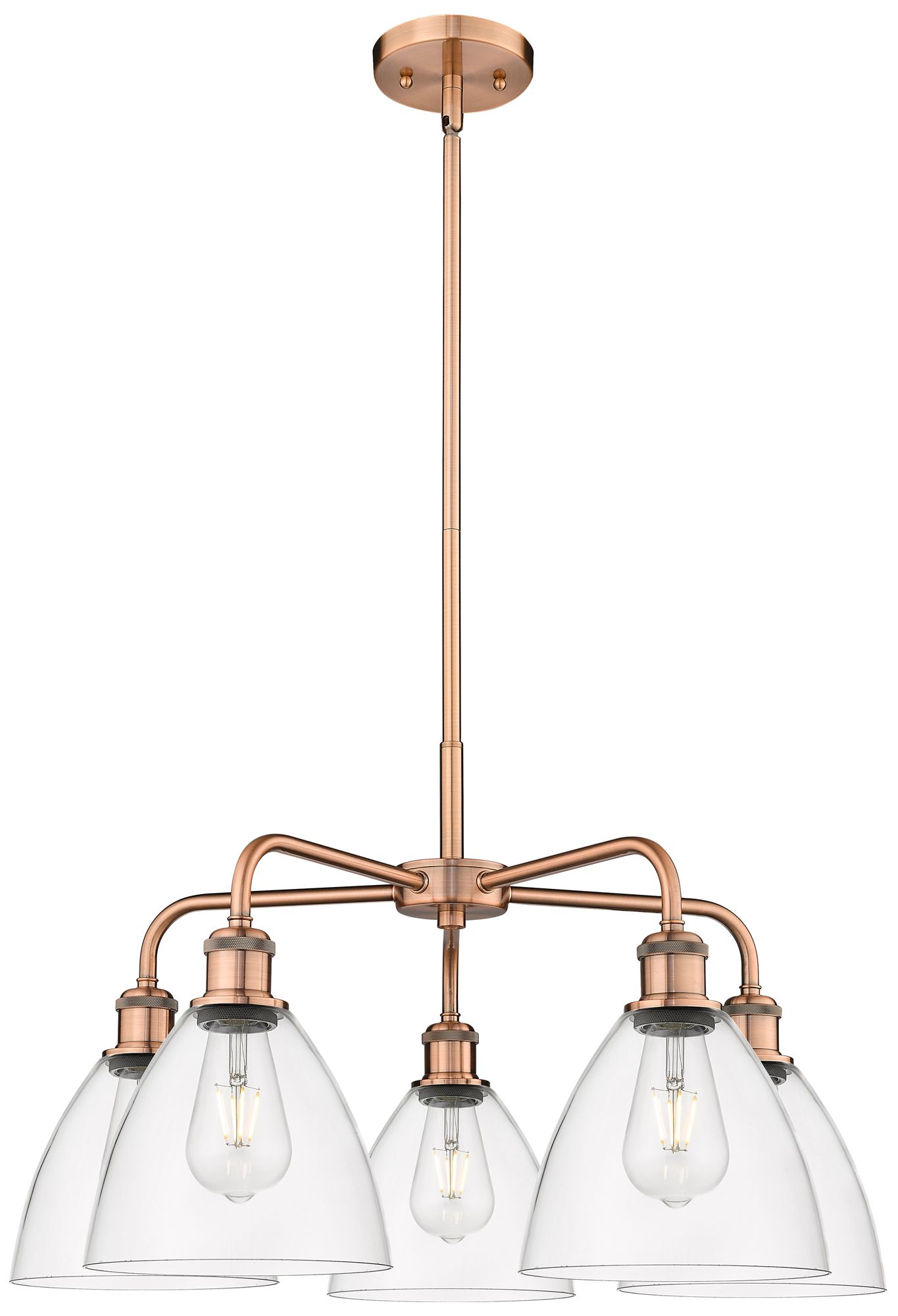 Bristol Glass 25.5"W 5 Light Copper Stem Hung Chandelier With Clear Sh