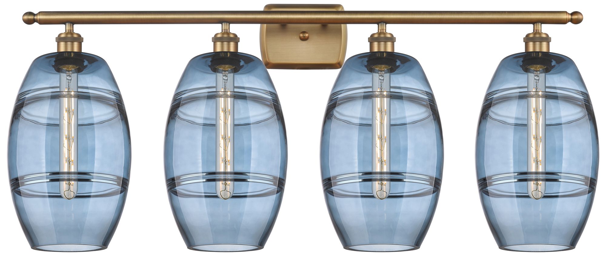 Ballston Vaz 38"W 4-Light Brushed Brass Bath Vanity Light w/Blue Shade