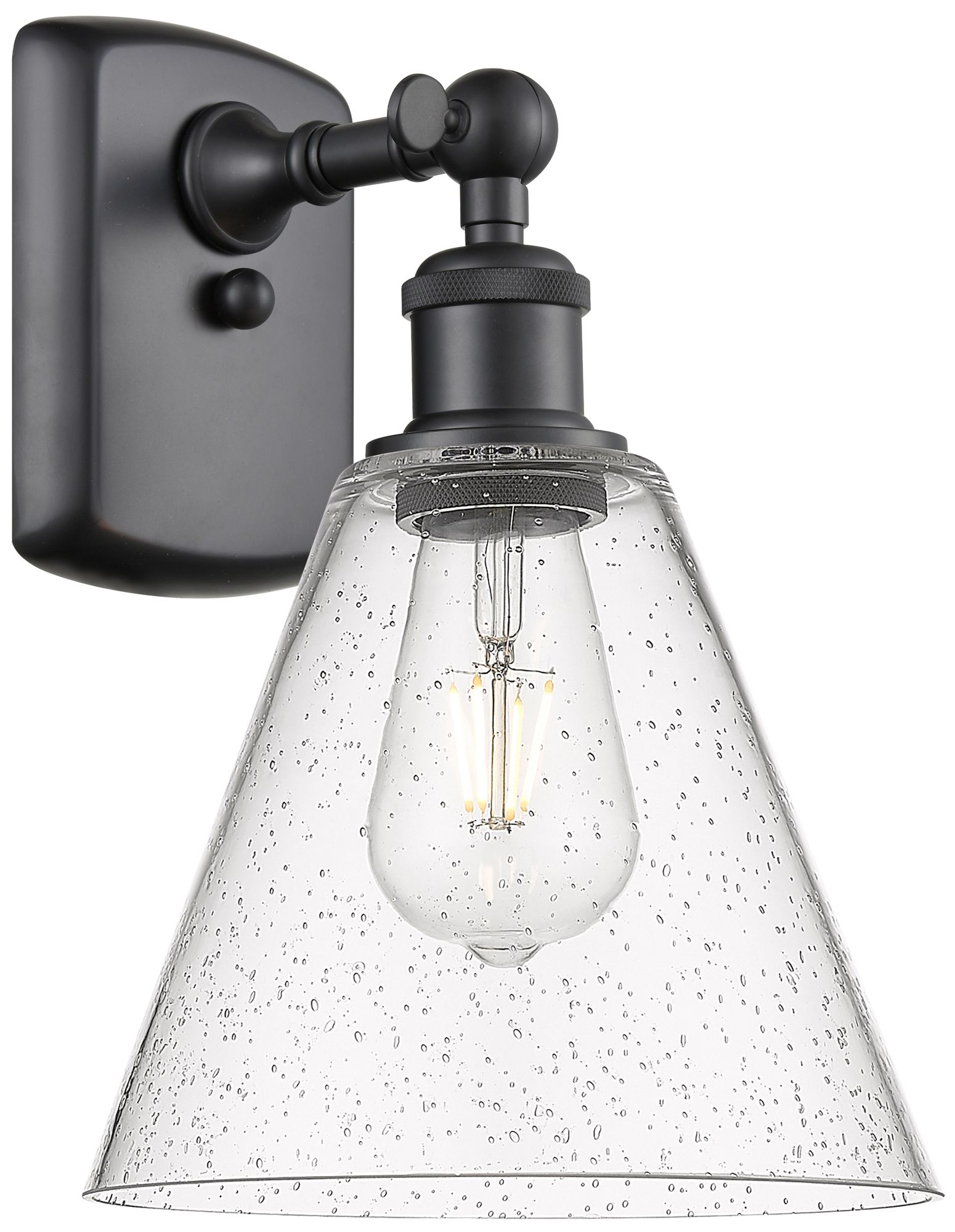 Berkshire Glass 8" LED Sconce - Matte Black Finish - Seedy Shade