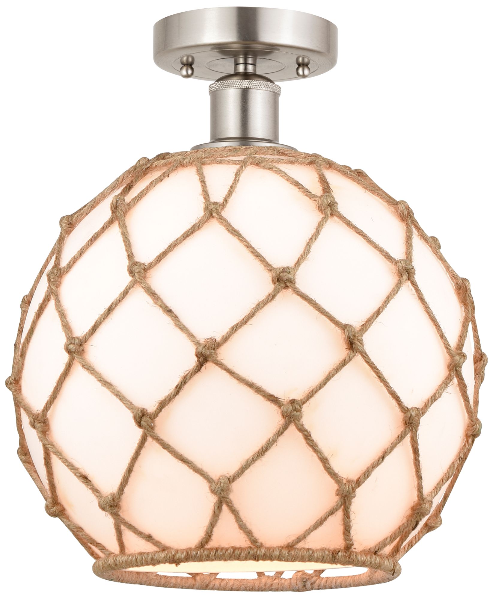Edison Farmhouse 10" Brushed Nickel Semi Flush w/ White & Brown Ro