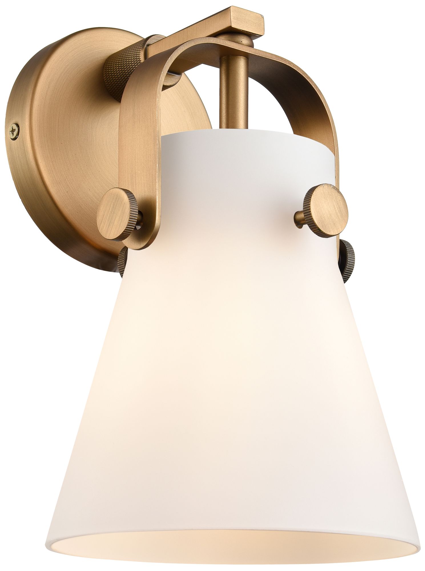 Pilaster II Cone 9.75" High Brushed Brass Sconce With Matte White Shad