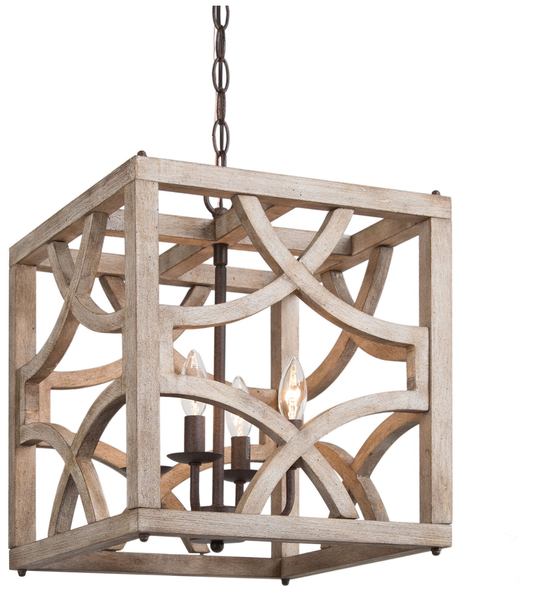 Julle 14.2" Wide Distressed Wood 4-Light Square Chandelier