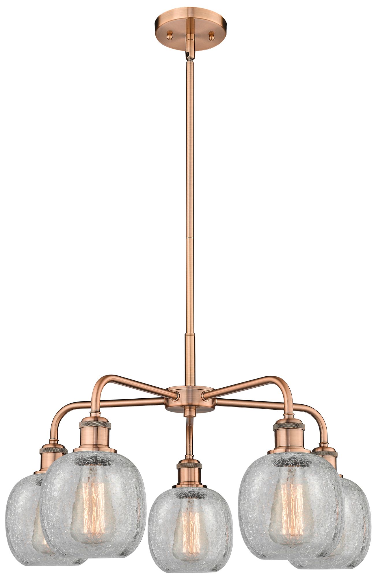 Belfast 24"W 5 Light Antique Copper Stem Hung Chandelier With Crackle