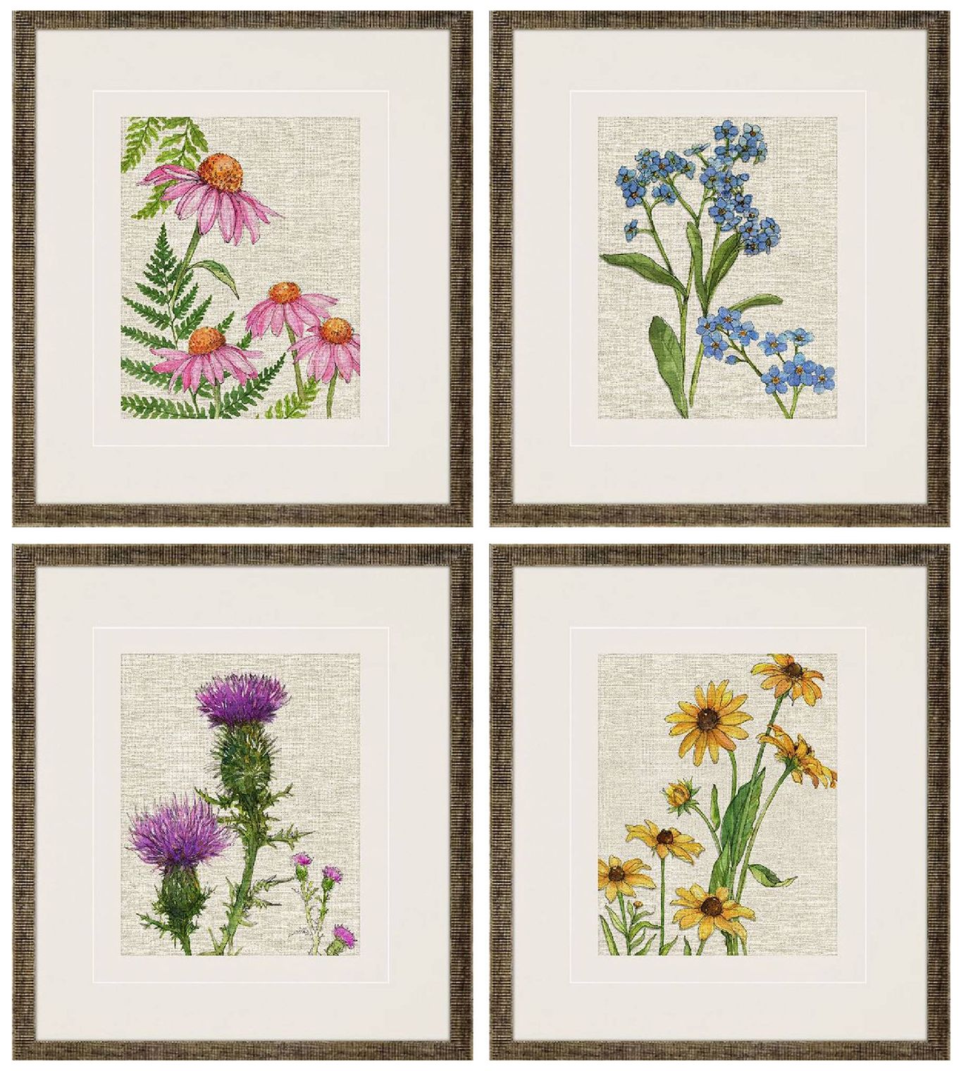 Wildflowers 15"W x 17"H Framed Art Set of 4