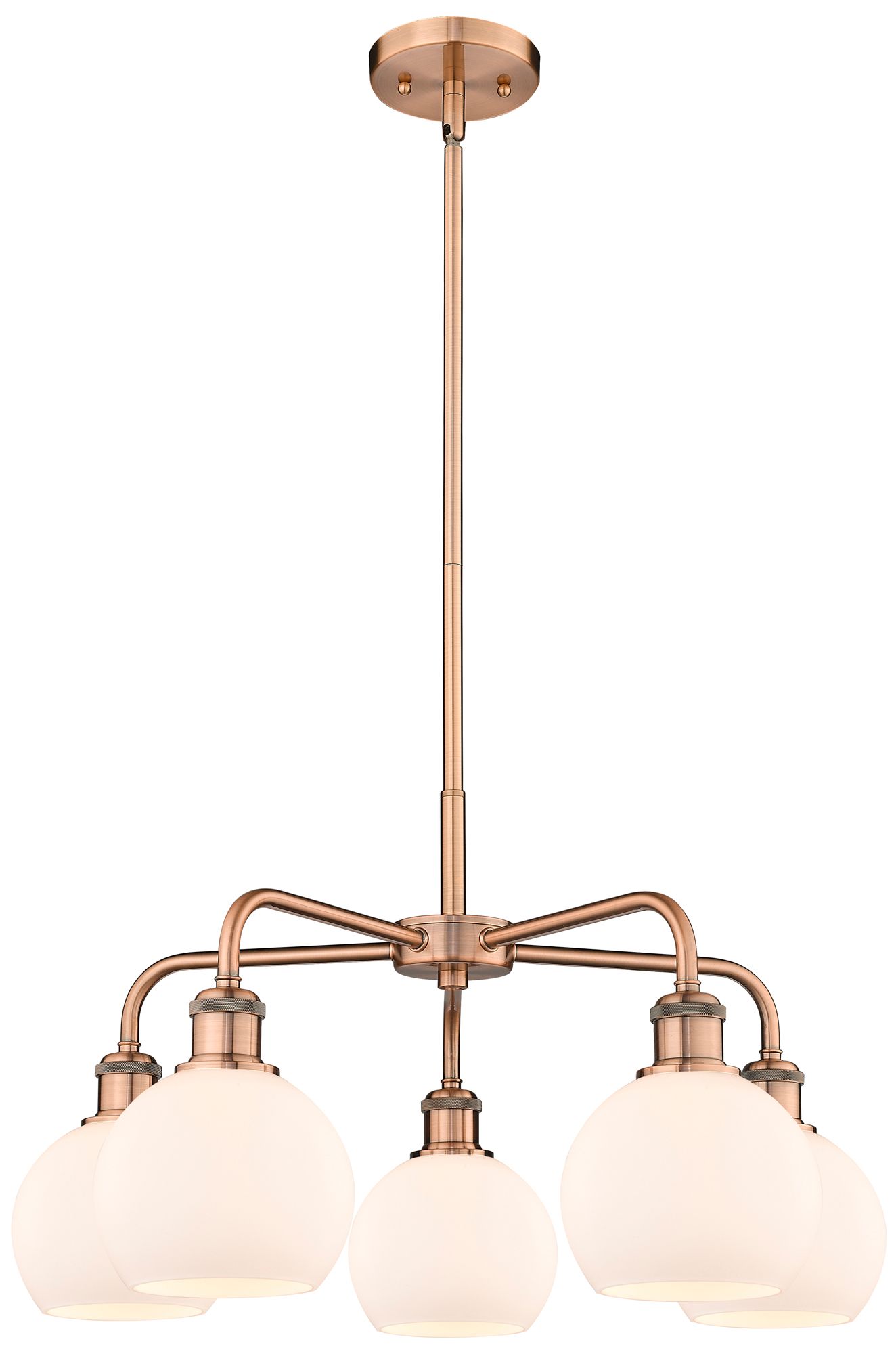 Athens 24"W 5 Light Antique Copper Stem Hung Chandelier With White Sha