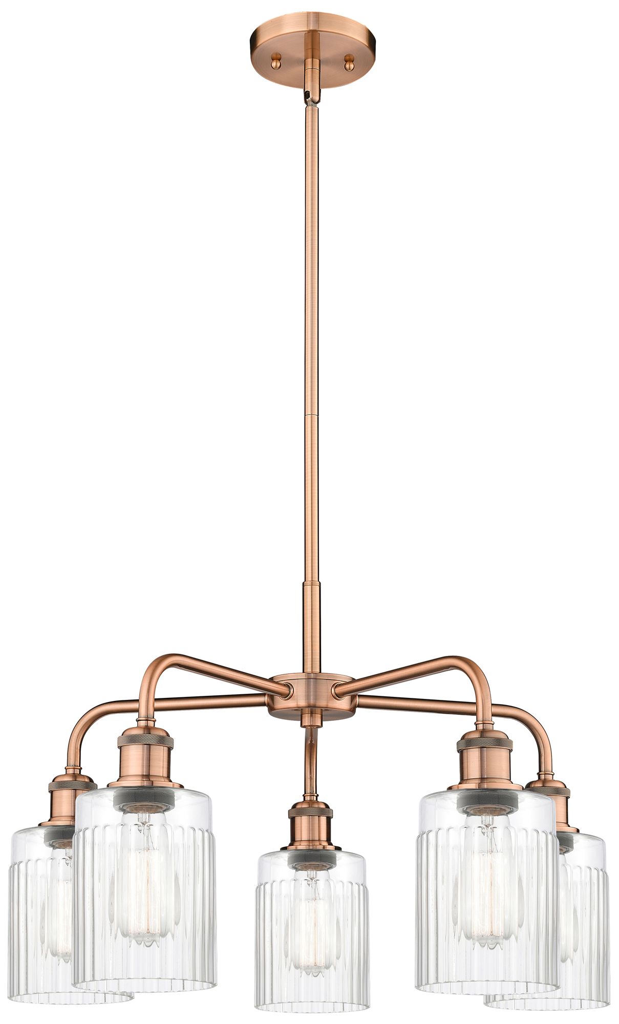 Hadley 22.5"W 5 Light Antique Copper Stem Hung Chandelier With Clear S