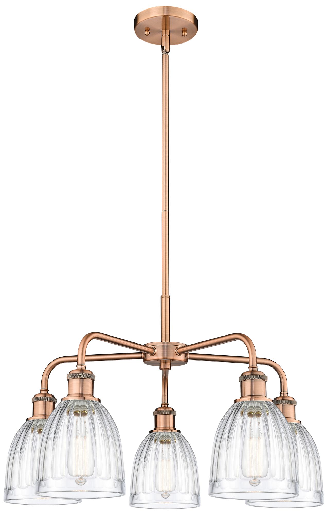 Brookfield 23.75"W 5 Light Copper Stem Hung Chandelier With Clear Shad