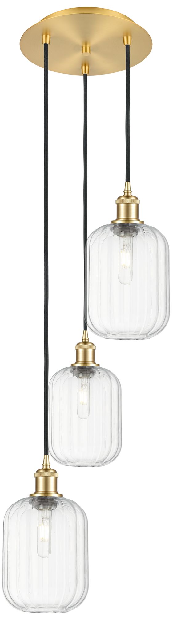 Ballston Preston 13"W 3 Light Gold Cord Pendant w/ Clear Jar Shade