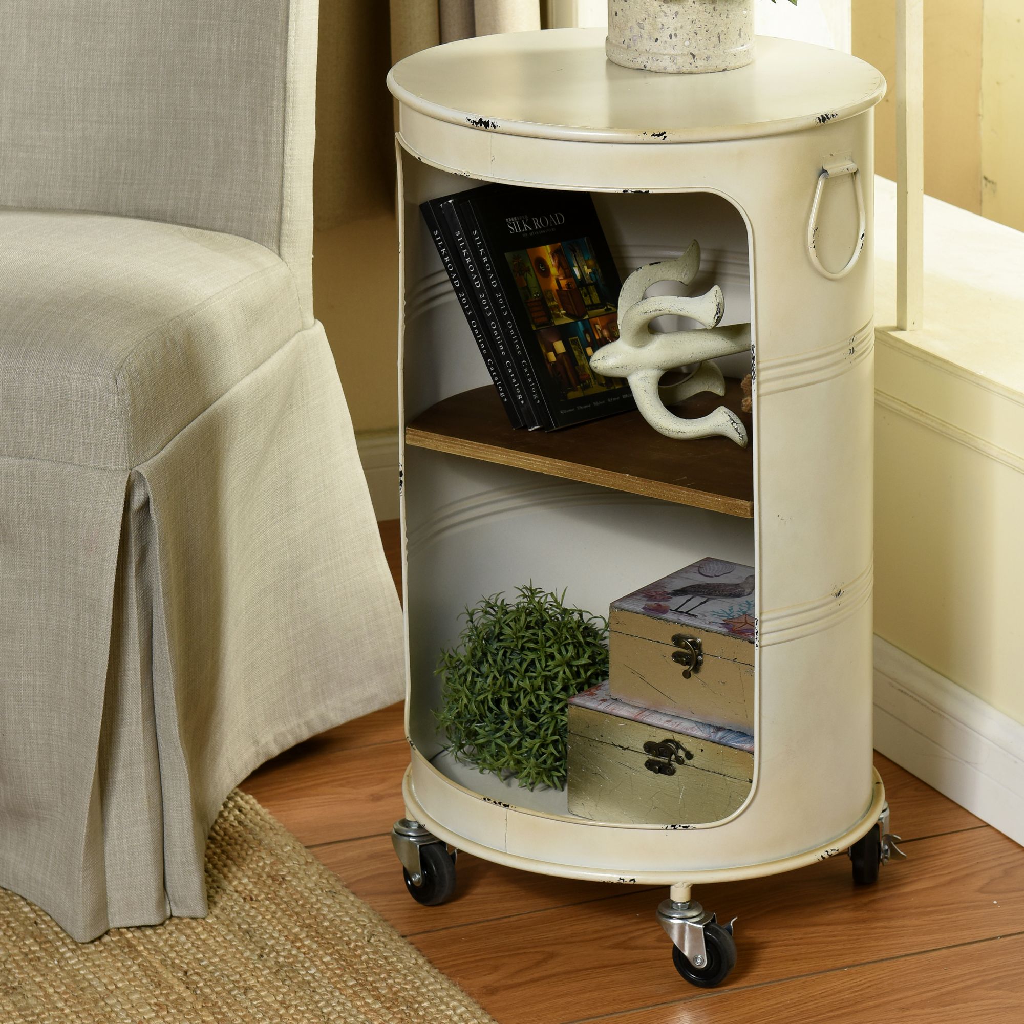 Church St. 27.4" High Antique White Wheeled Side Table or Bar Cart