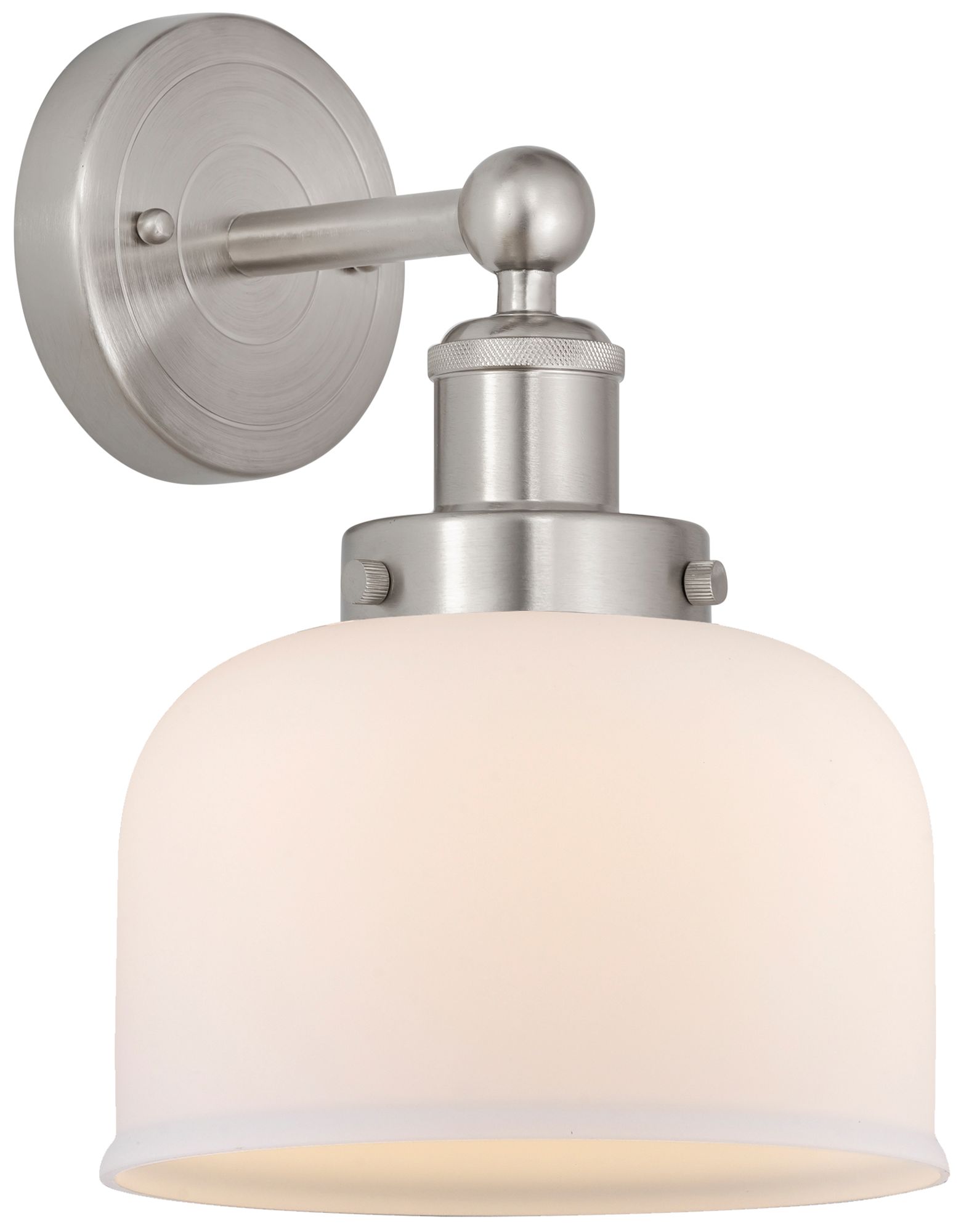 Edison Large Bell 7" Brushed Satin Nickel Sconce w/ Matte White Shade