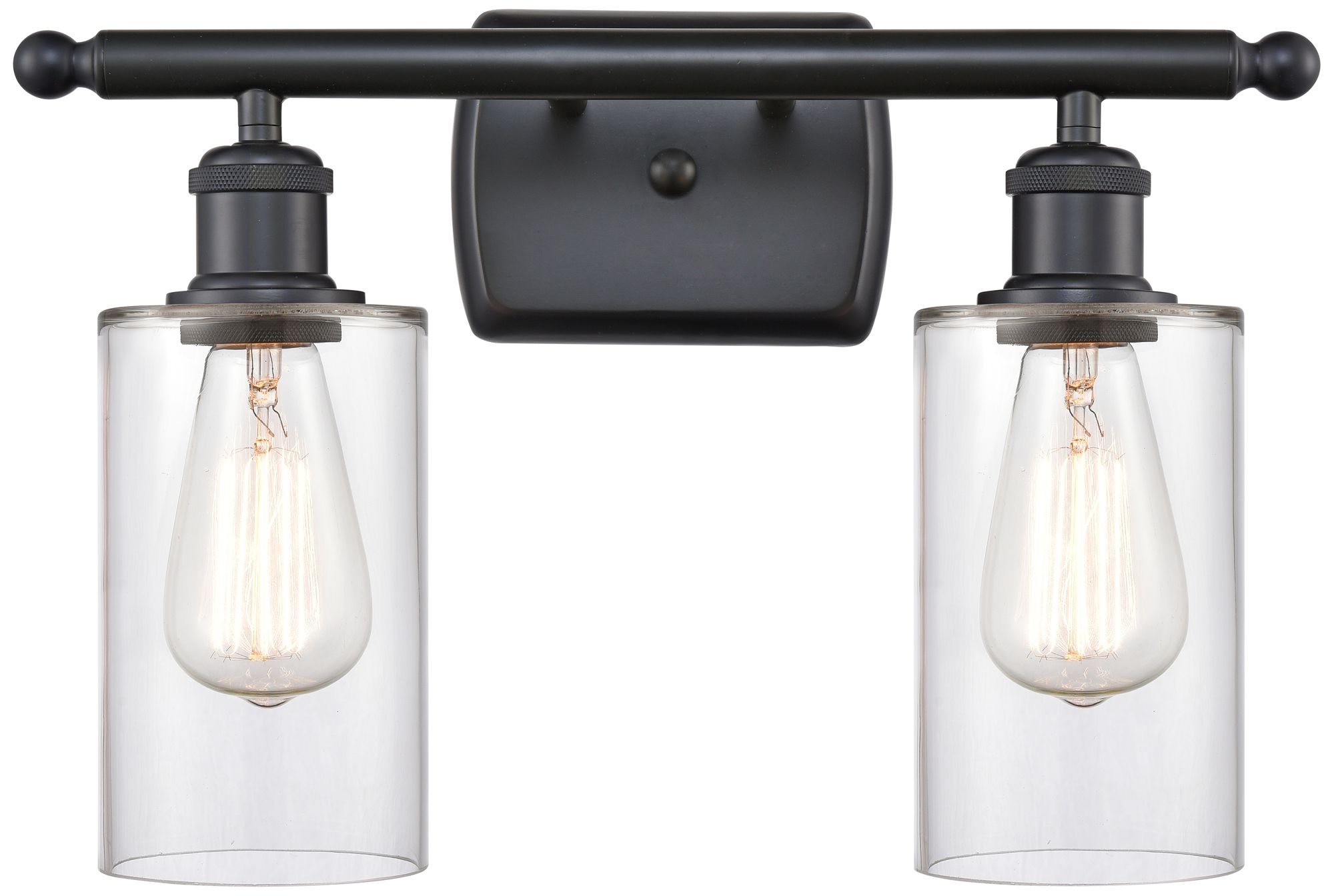 Clymer 16" 2-Light Matte Black Bath Light w/ Clear Shade