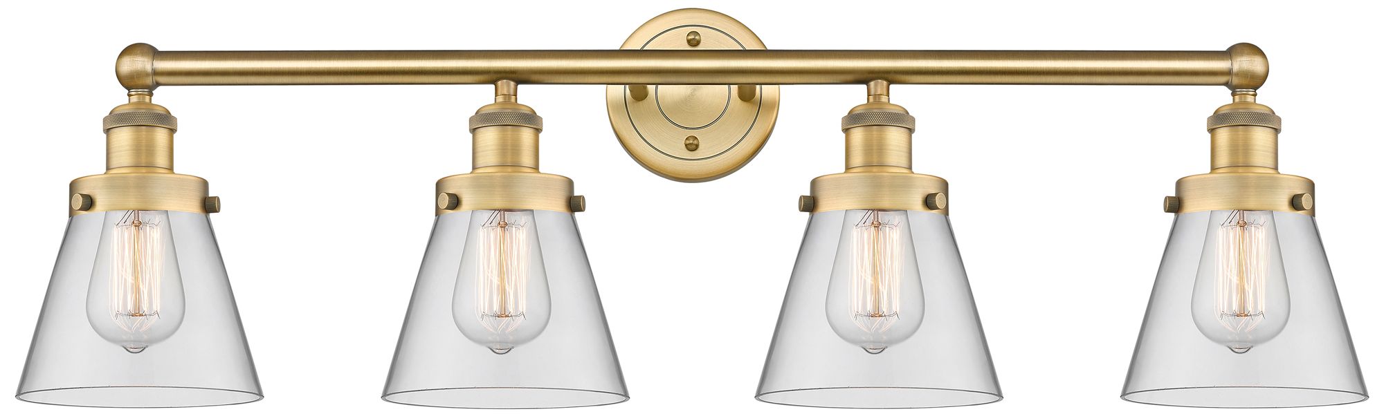 Cone 33.5" Wide 4 Light Brushed Brass Bath Vanity Light With Clear Sha
