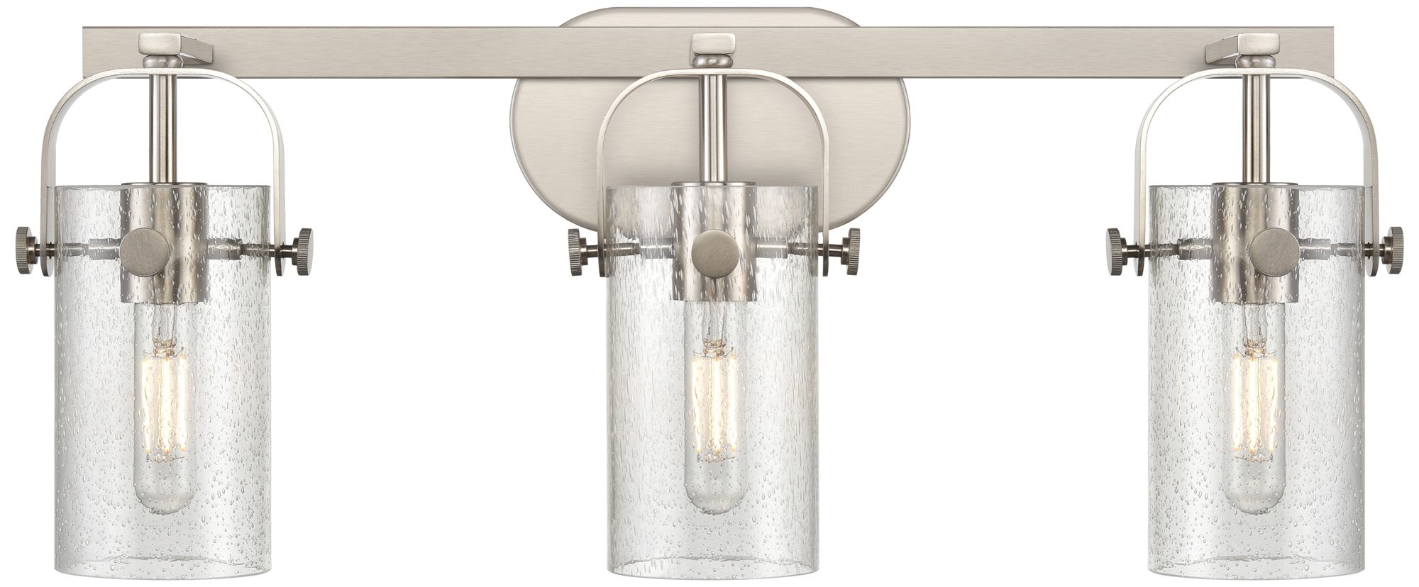 Pilaster II Cylinder 25"W 3 Light Satin Nickel Bath Light w/ Seedy Sha