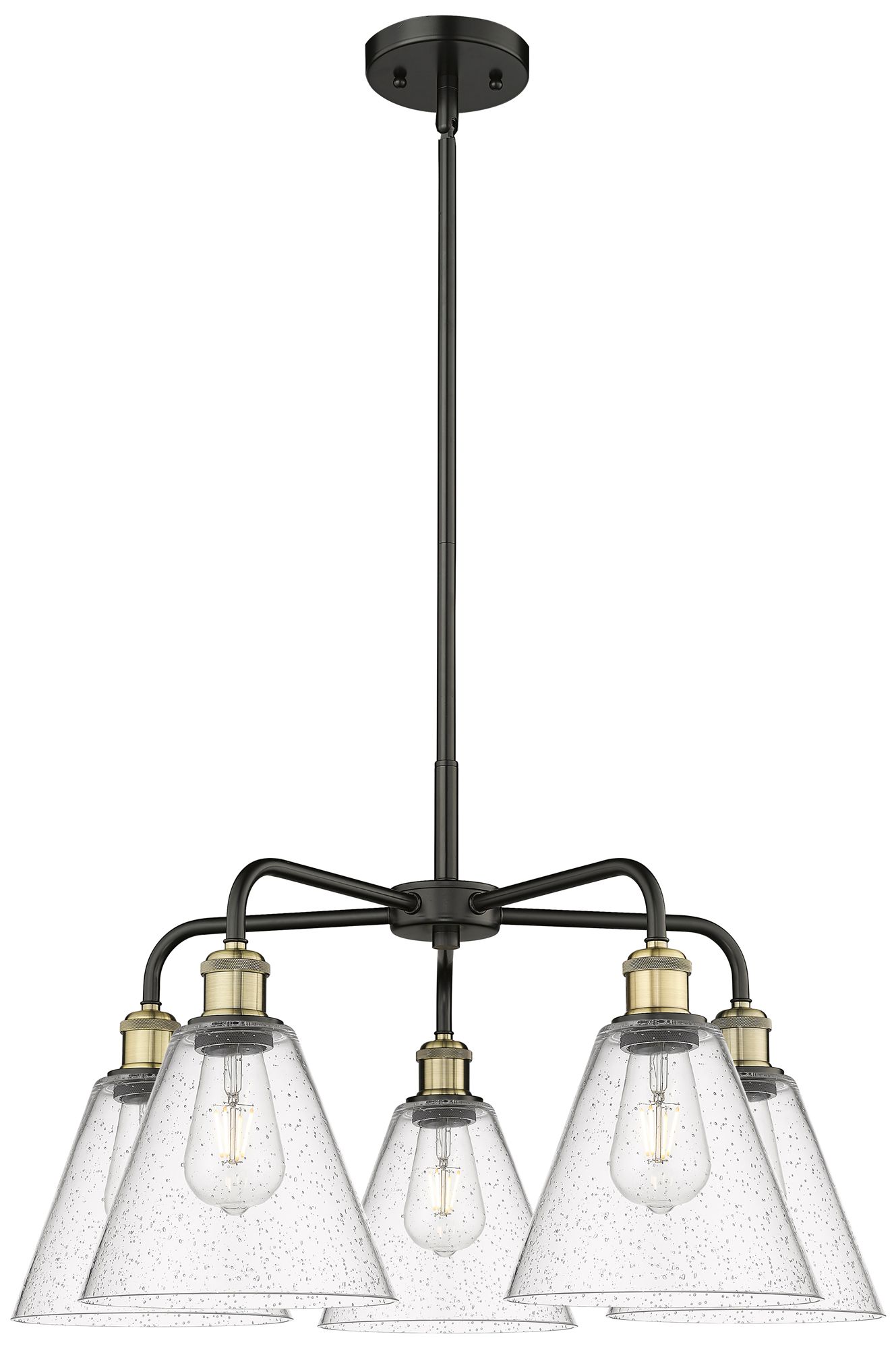 Berkshire 26"W 5 Light Black Brass Stem Hung Chandelier With Seedy Sha