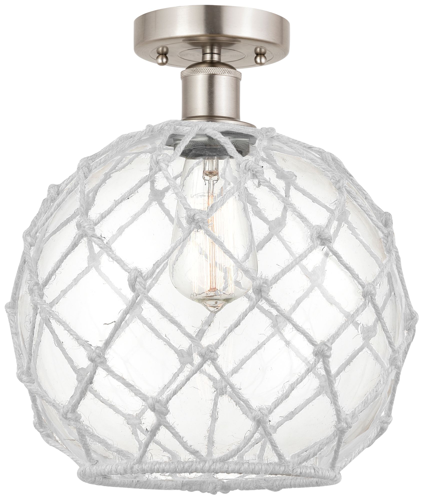 Edison Farmhouse 10" Brushed Nickel Semi Flush w/ Clear & White Ro