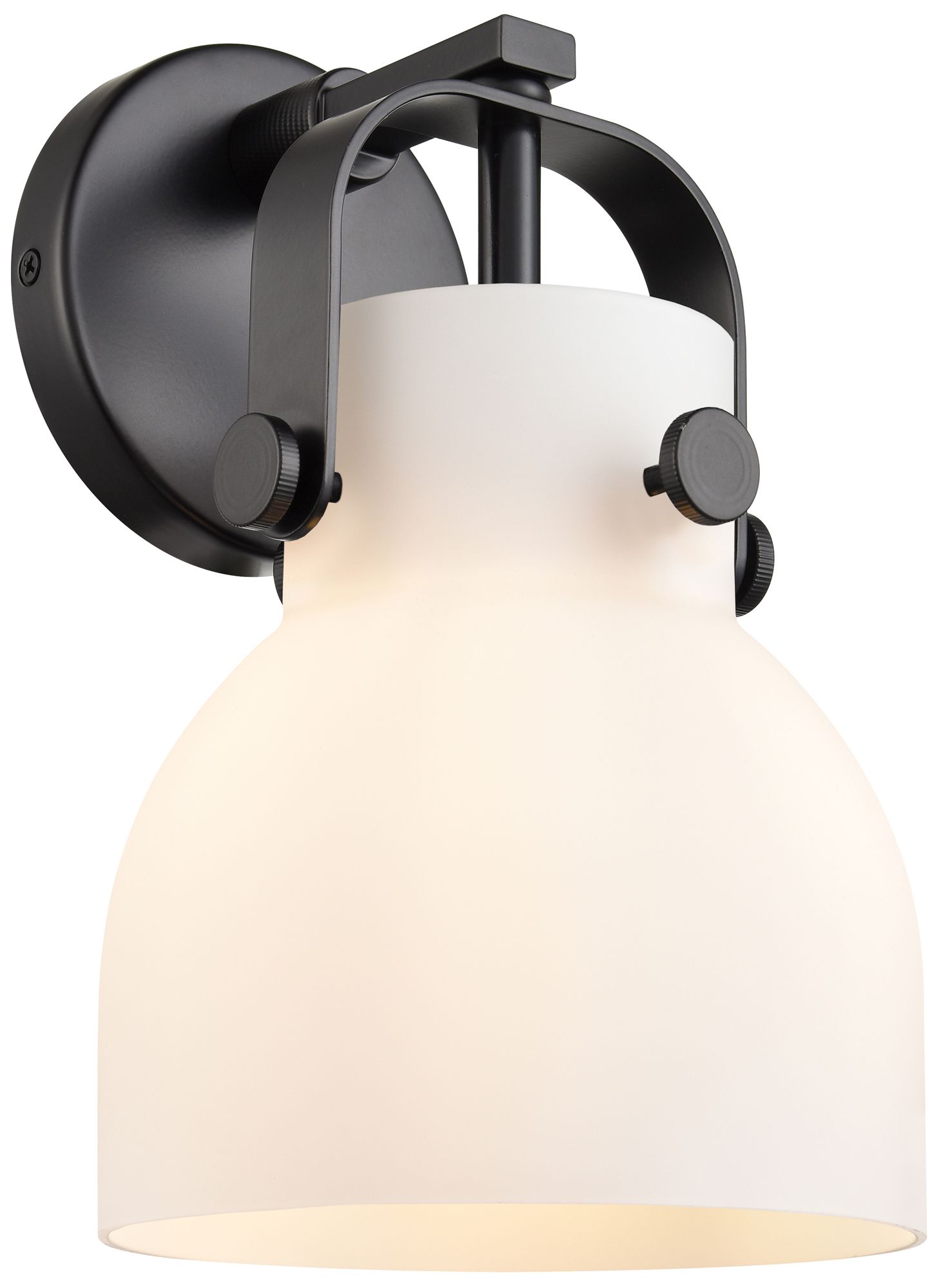 Pilaster II Bell 9.75" High Matte Black Sconce With Matte White Glass