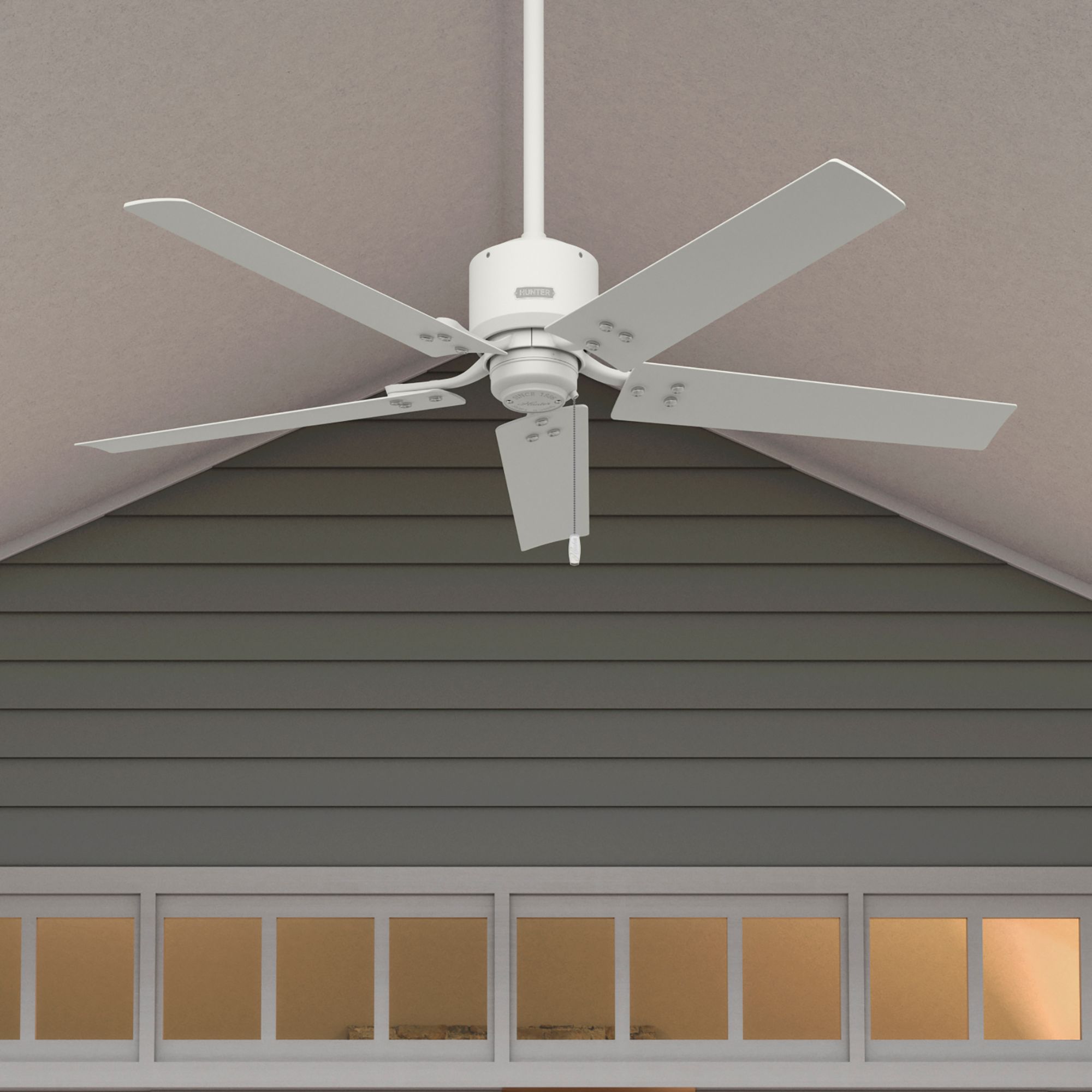 52" Hunter Windbound Matte White Damp Rated Ceiling Fan and Pull Chain