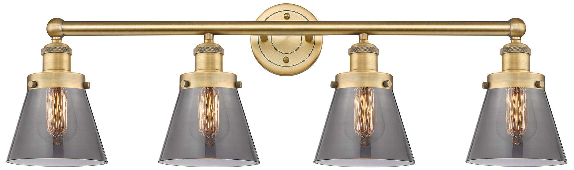 Cone 33.5"W 4 Light Brushed Brass Bath Vanity Light w/ Plated Smoke Sh