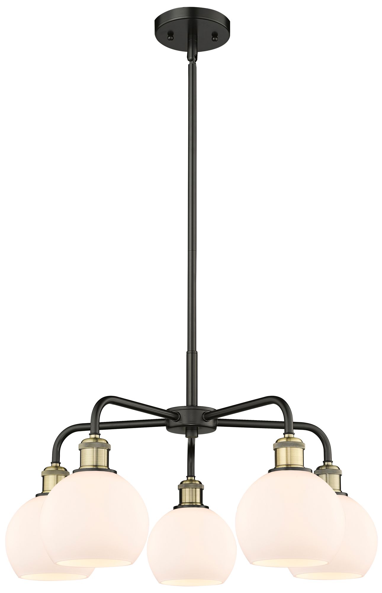 Athens 24"W 5 Light Black Brass Stem Hung Chandelier With White Shade