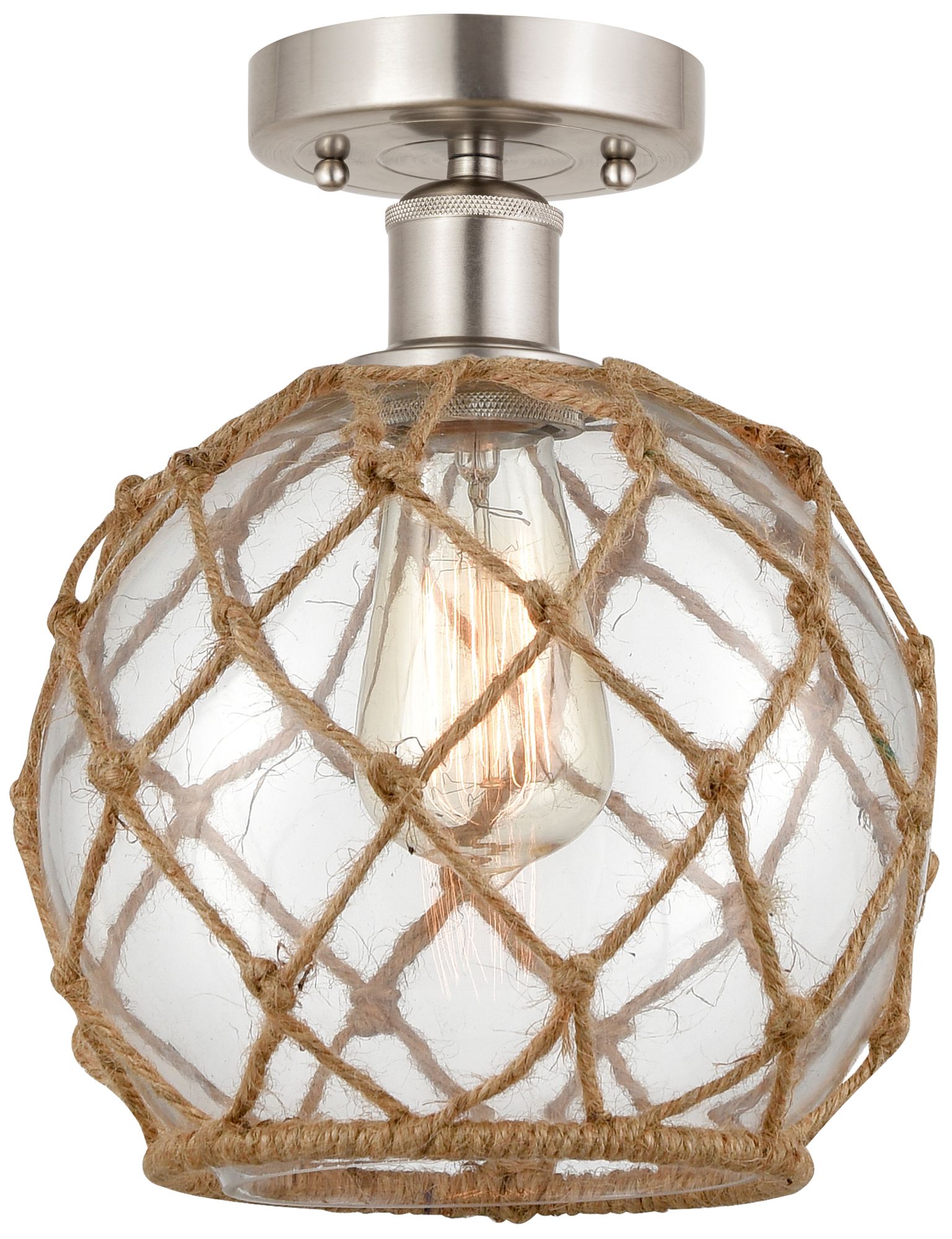 Edison Farmhouse 8" Brushed Nickel Semi Flush w/ Clear & Brown Rop