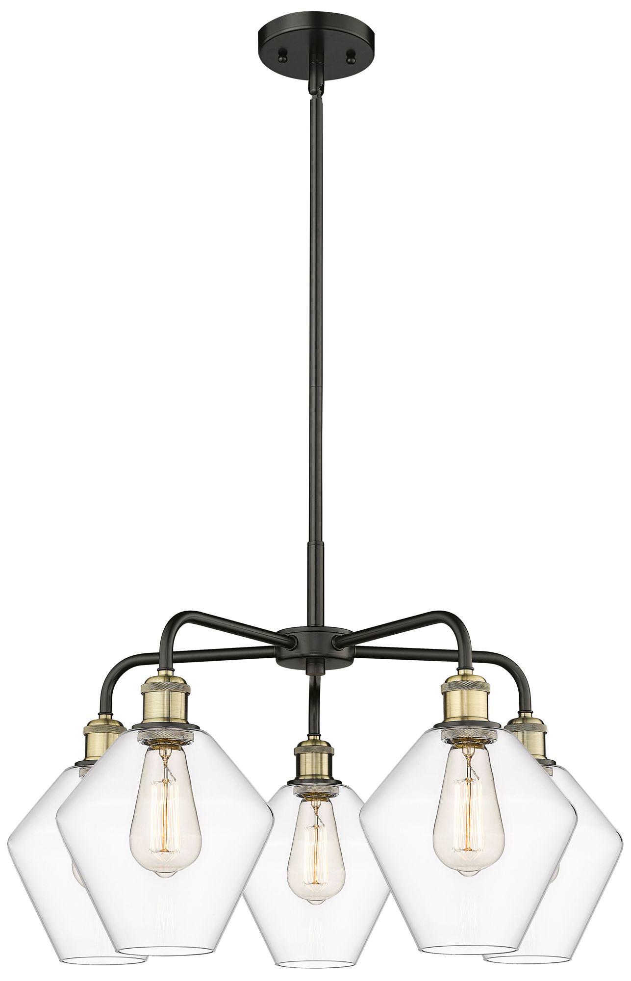 Cindyrella 26"W 5 Light Black Brass Stem Hung Chandelier With Clear Sh