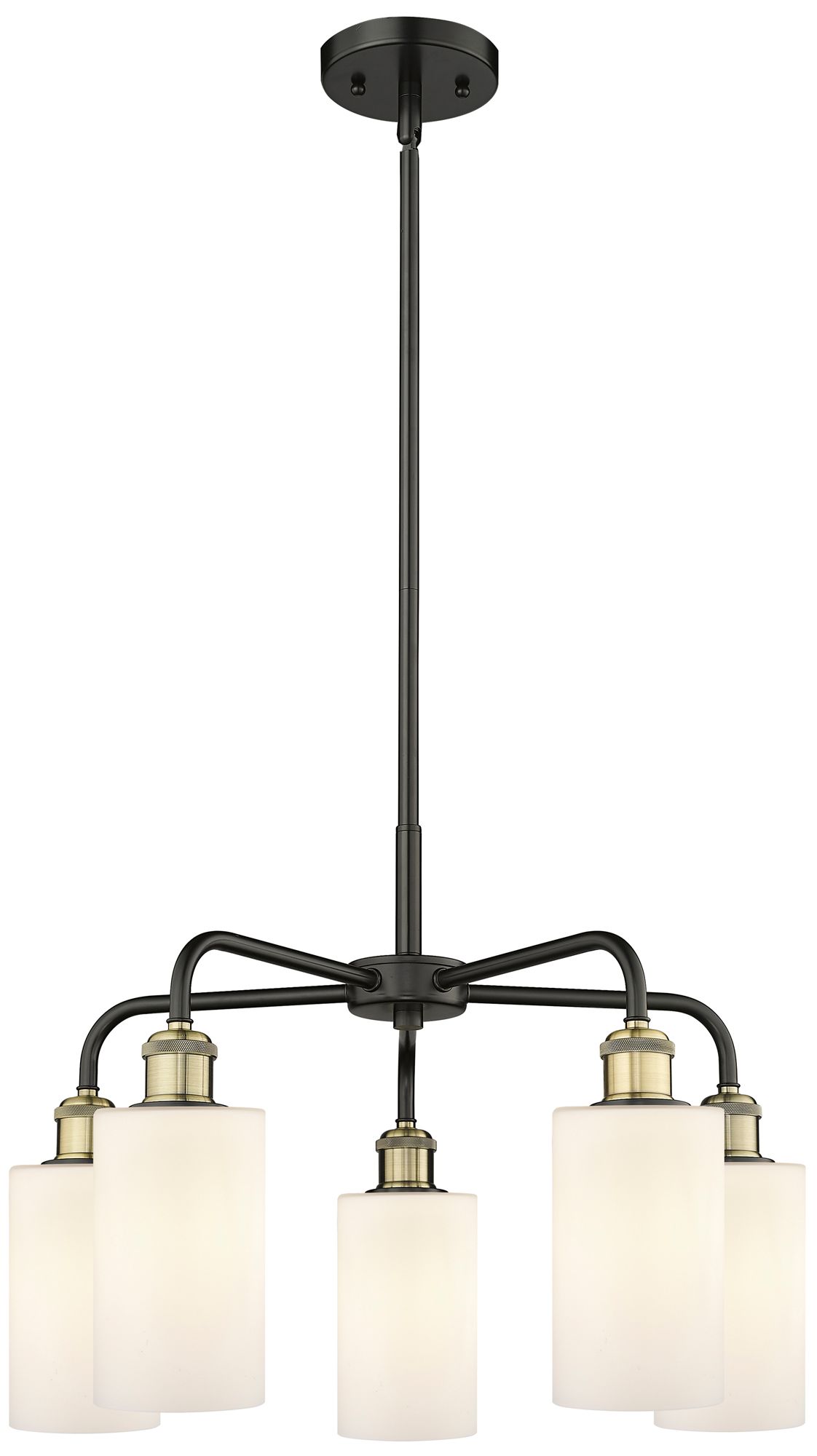Clymer 21.88"W 5 Light Black Brass Stem Hung Chandelier With White Sha