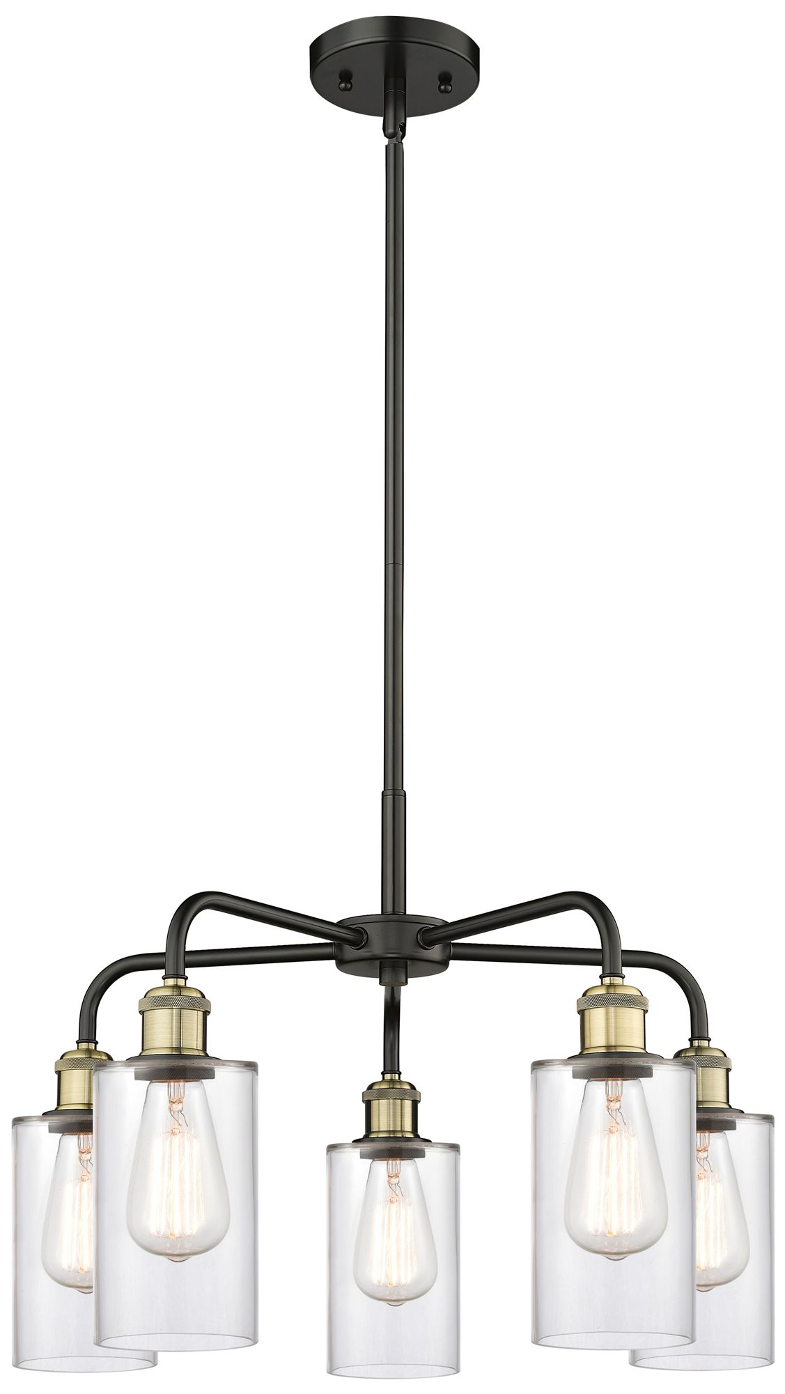 Clymer 21.88"W 5 Light Black Brass Stem Hung Chandelier With Clear Sha