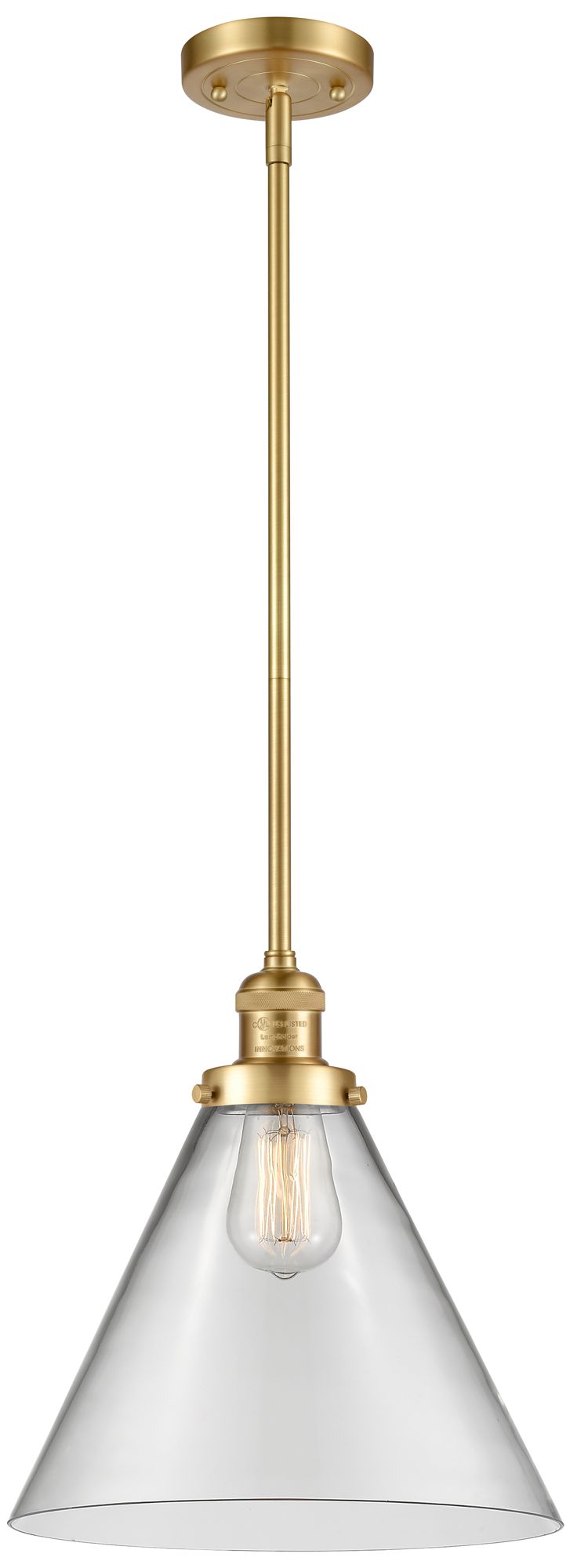 Franklin Restoration Cone 12" Gold Stemmed Mini Pendant w/ Clear Shade